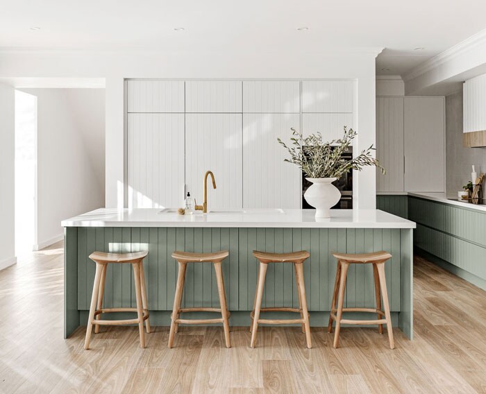 This intentional perpendicular design also cleverly creates a walk-in butler’s pantry – a must-have for modern, lived in, family homes.